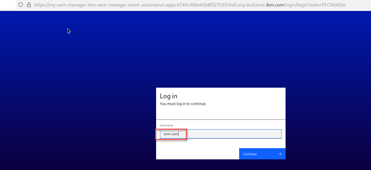 Login to the EEM home page as eem-user we will need to get info on the topic for this lab.