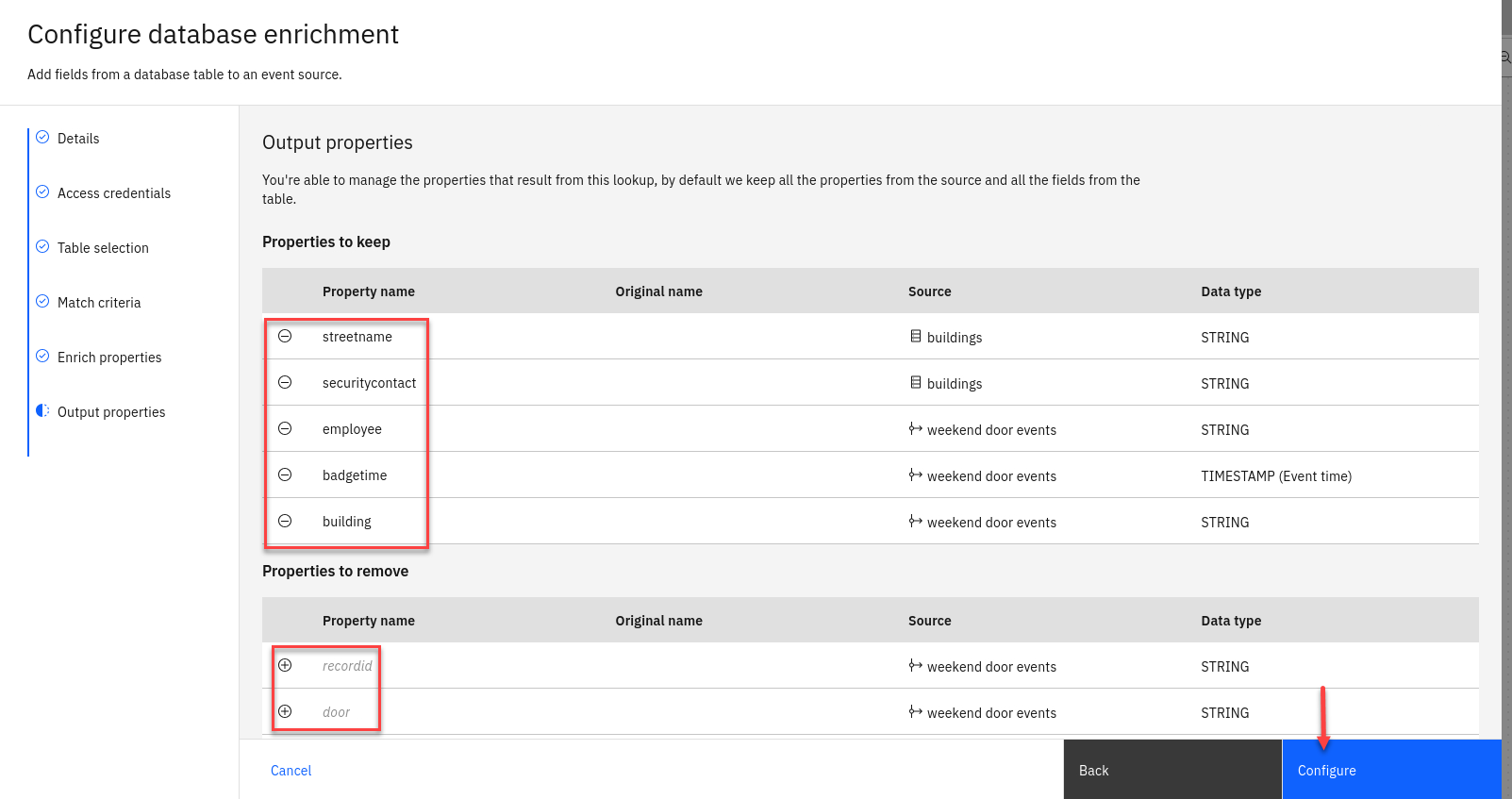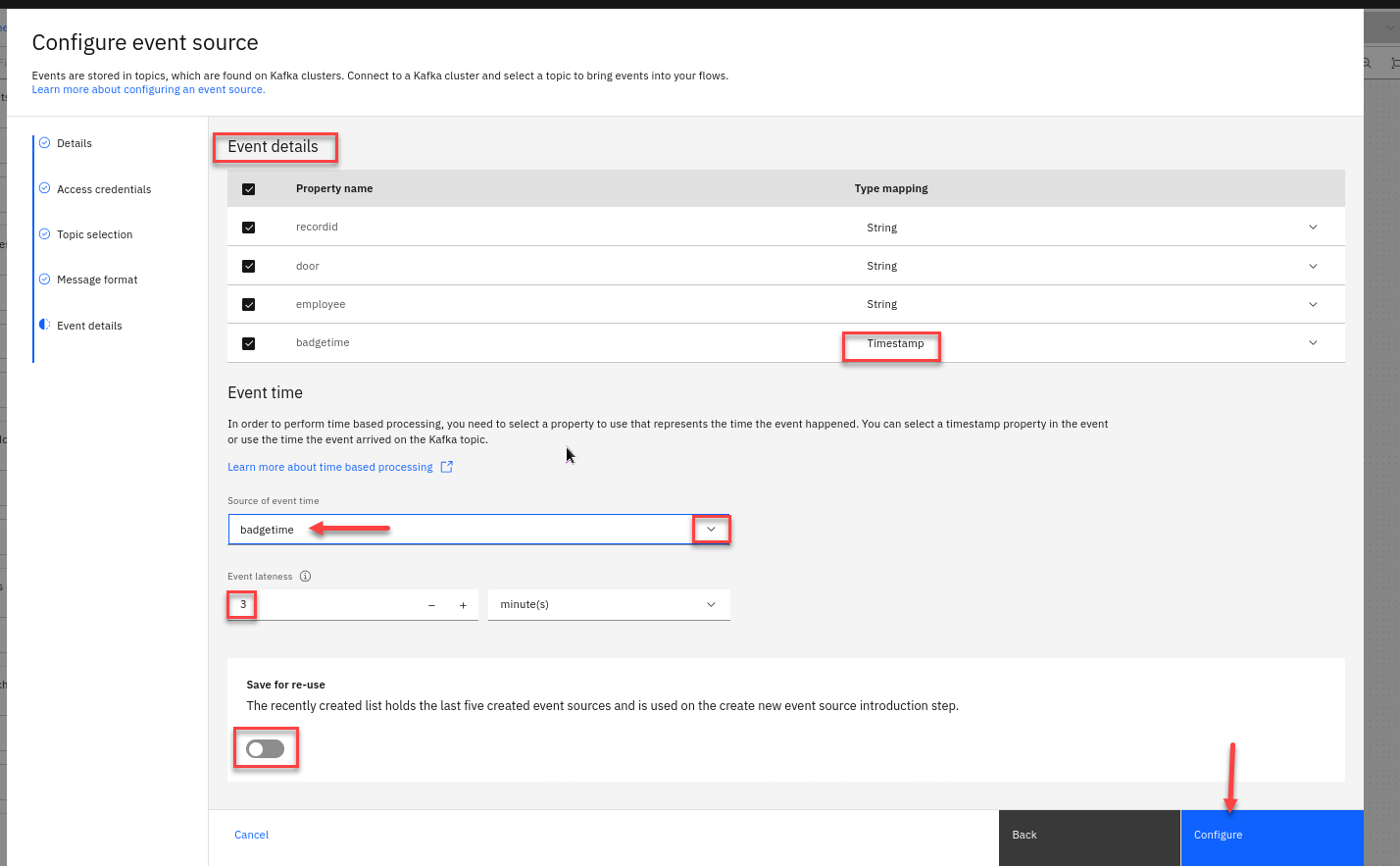 Click Configure to finalize the event source.