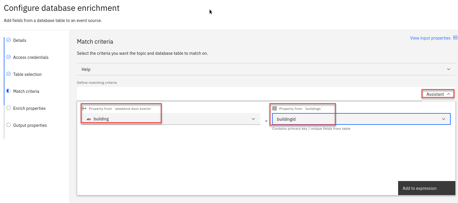 Use the assistant to define a join that matches events with the database row about the same building.