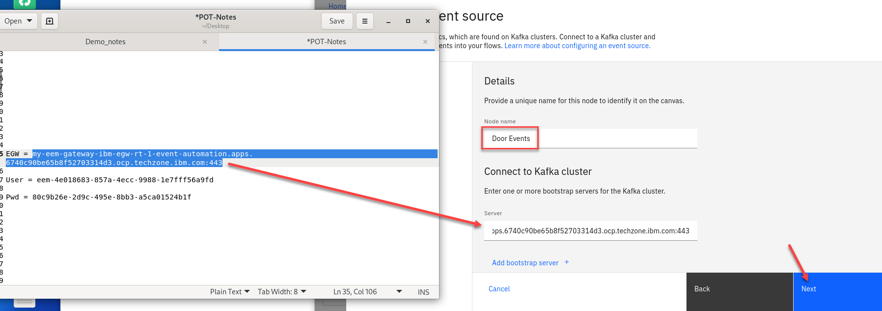 In the Cluster connection pane, give the Node Name a unique name for this node Ex: Door Events
