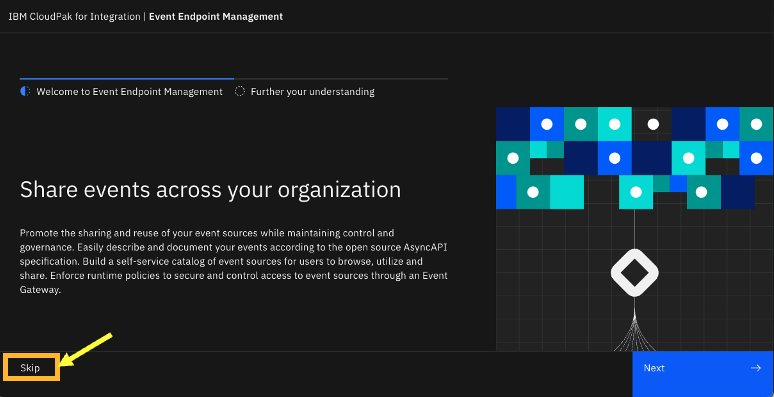 Logon to IBM Event Endpoint Manager as an Admin user “eem-admin”, and password “passw0rd”.