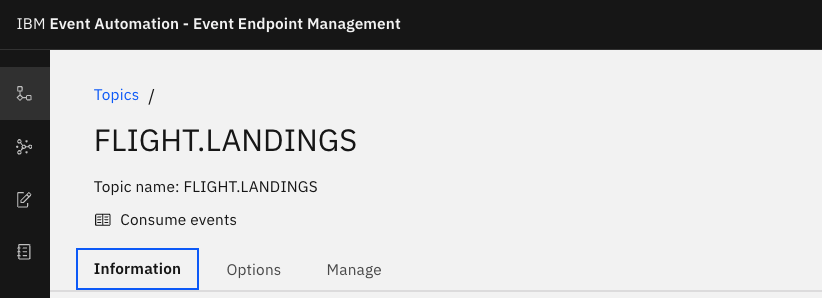 Please be informed that the FLIGHT.LANDINGS Topic from IBM Event Streams is preconfigured within EEM, and an application is consistently generating events into this Topic at regular intervals.
