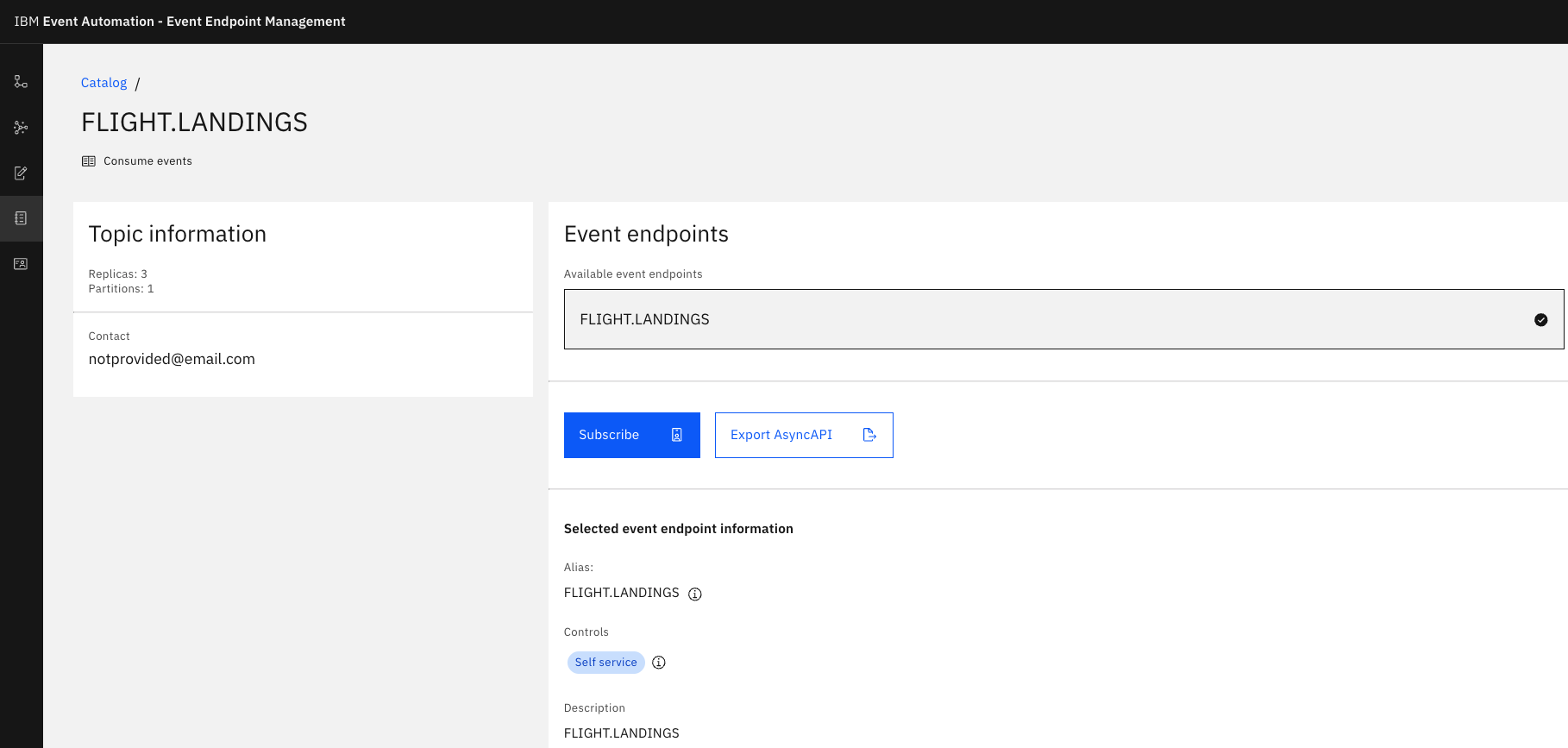2. IBM Event Endpoint Manager – FLIGHT.LANDINGS Topic Review