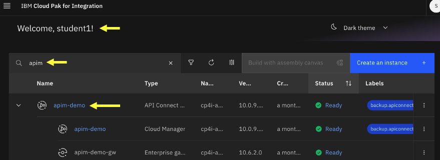 From the IBM Cloud Pak for Integration Platform Navigator Console, open IBM Api Management Console.