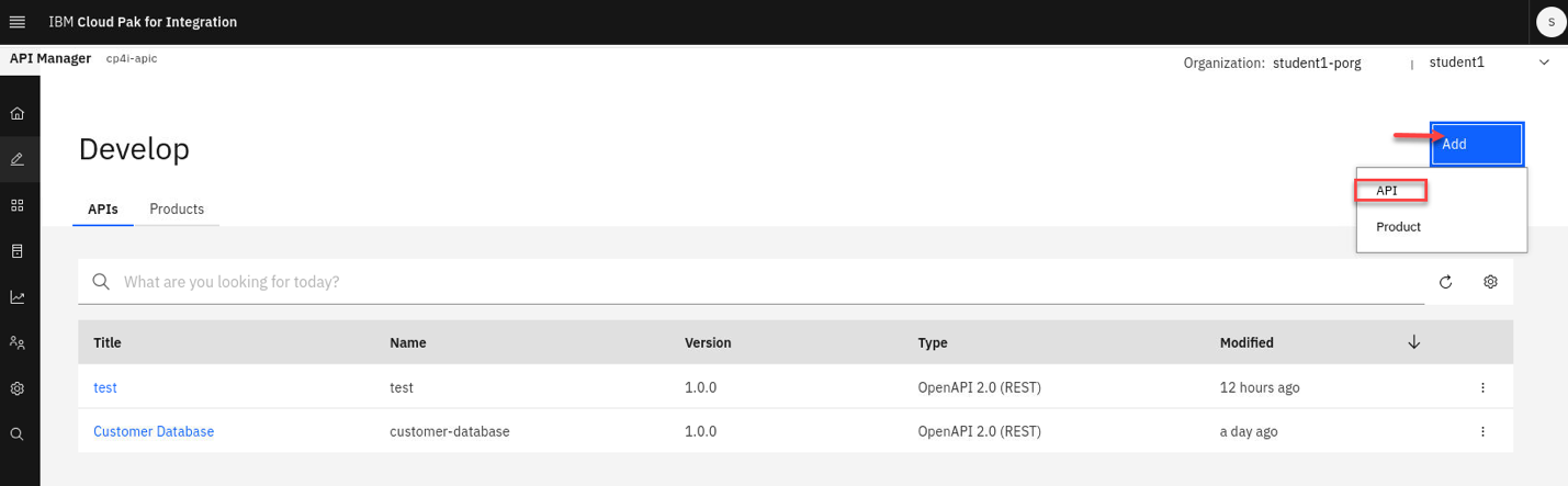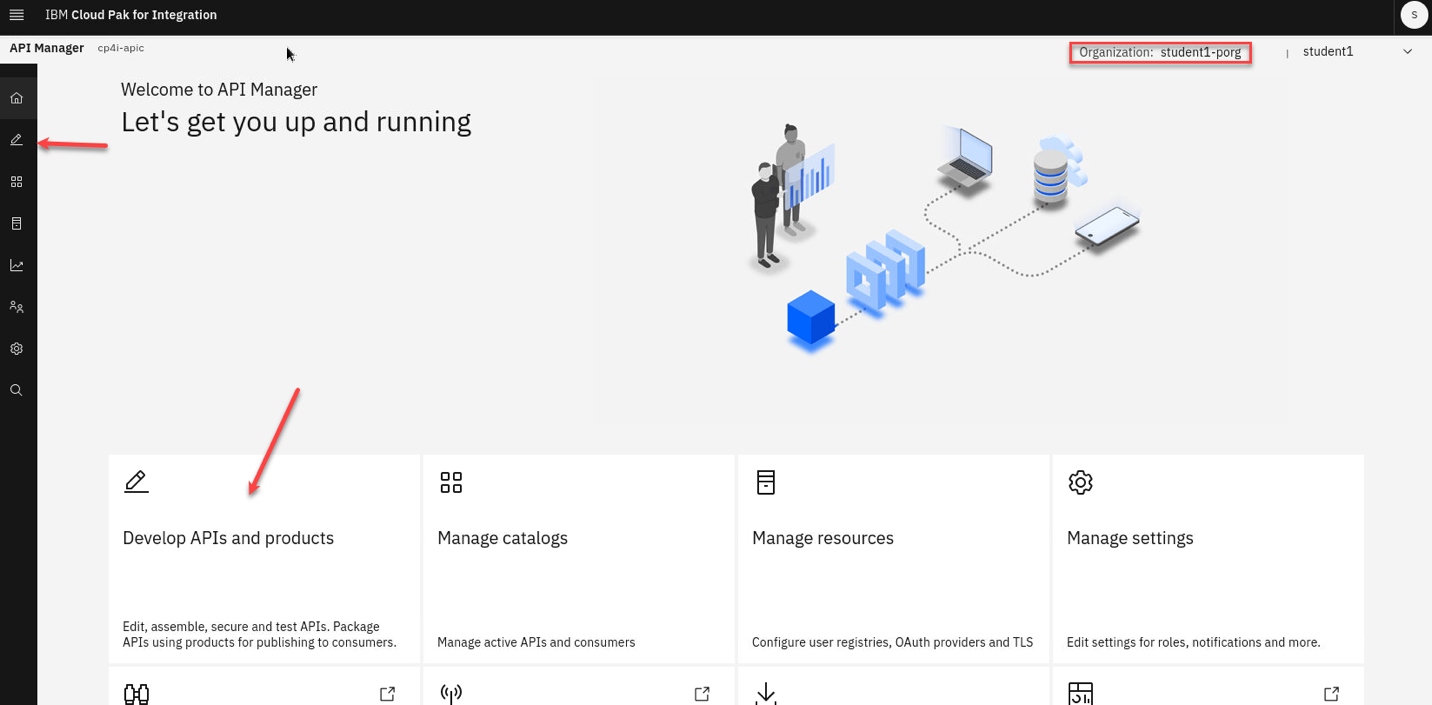 a) Select Develop APIs from the Tile or the link on the left menu.