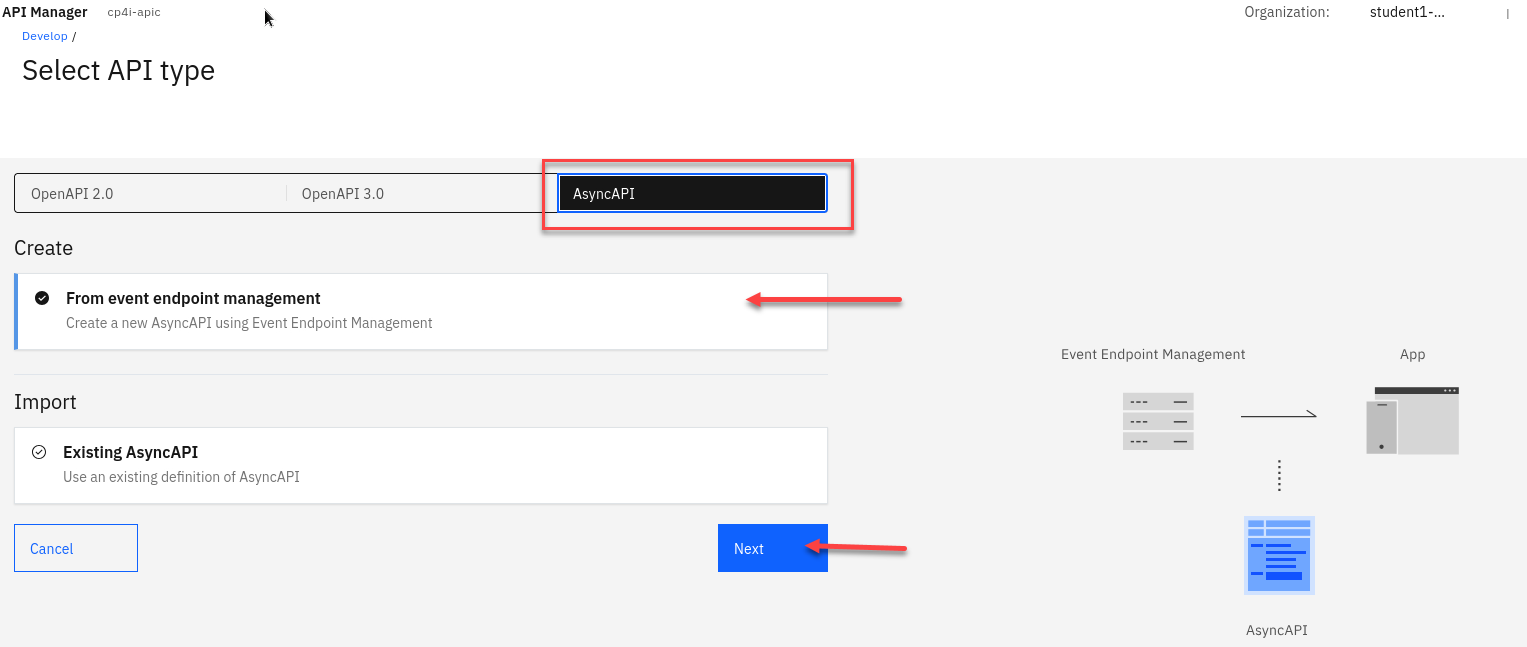 In this lab, you will explore the full potential of ASYNCAPI within IBM Event Automation and IBM API Connect. ASYNCAPI enables the integration of Kafka Topics into APIs via IBM Event Endpoint Management (EEM), which is a feature of IBM Event Automation, as well as IBM API Connect.