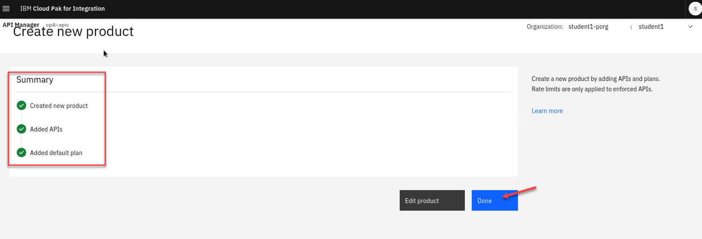 Once login make sure you are logged in the correct Provider Organization. In this screen shot it is student<n>-porg