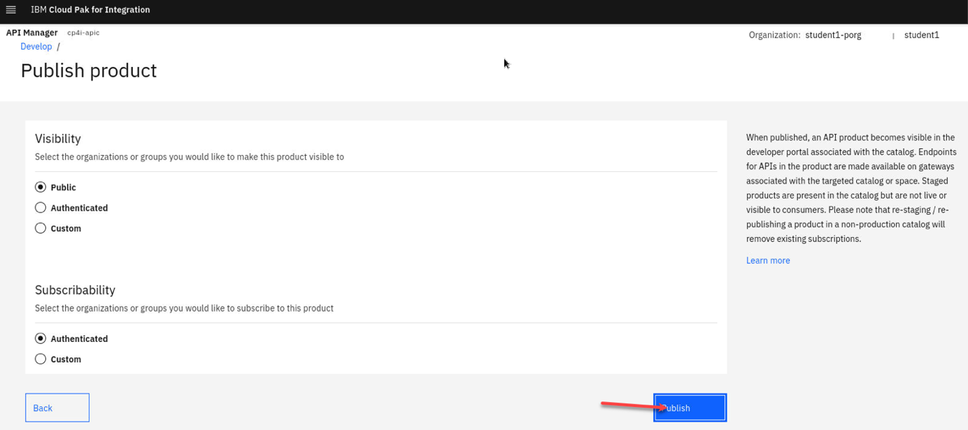 Now, publish the AsyncApi’s Product to the IBM Api Connect Developer Portal, and to the IBM Event Gateway.
