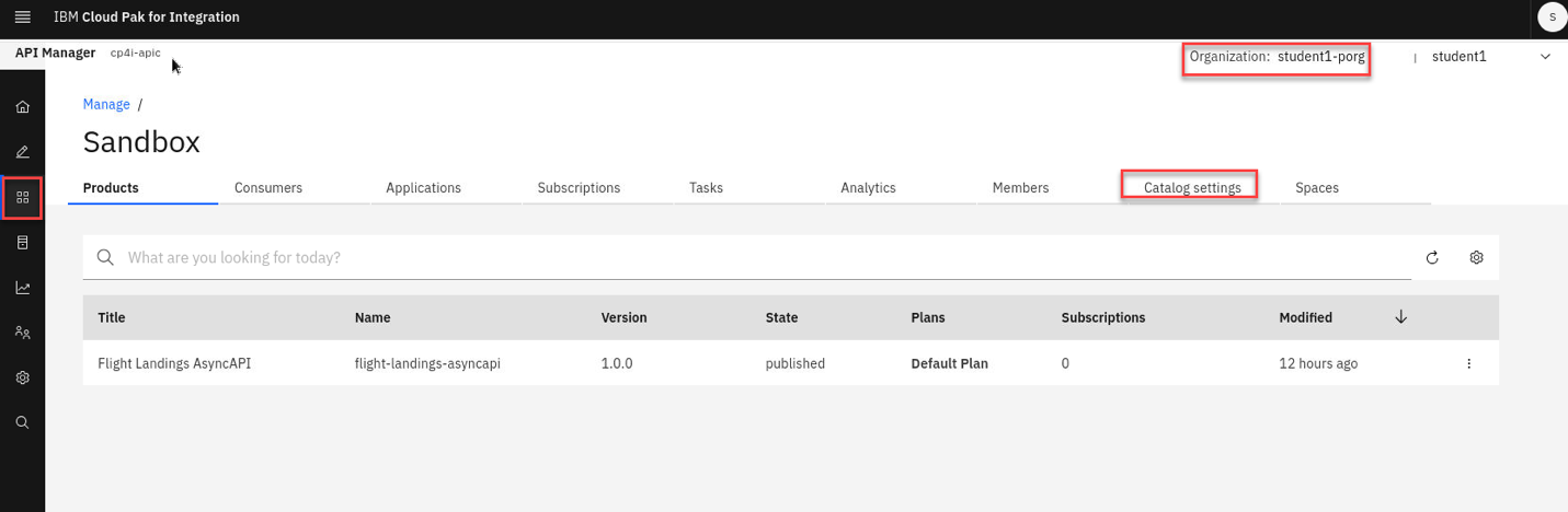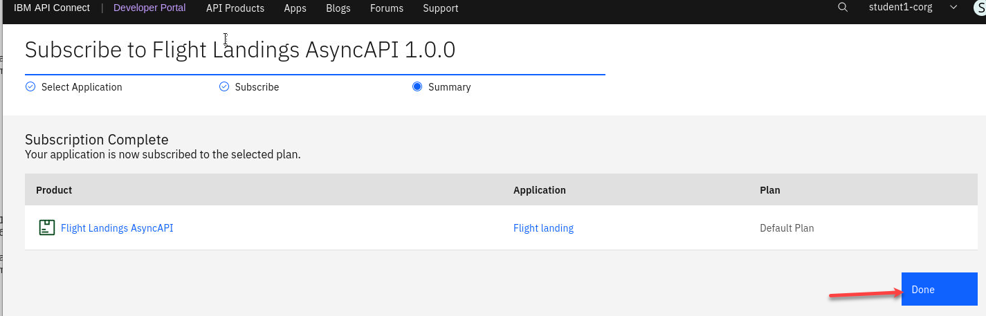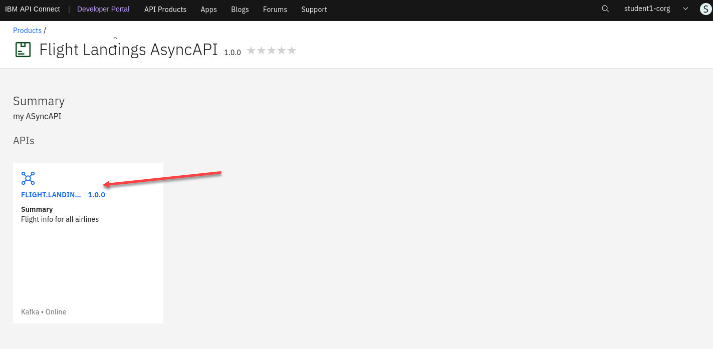 c) You should now be signed in under your student COrg. You will also see the Flight Landings AsyncAPI that you published in the pervious lab.