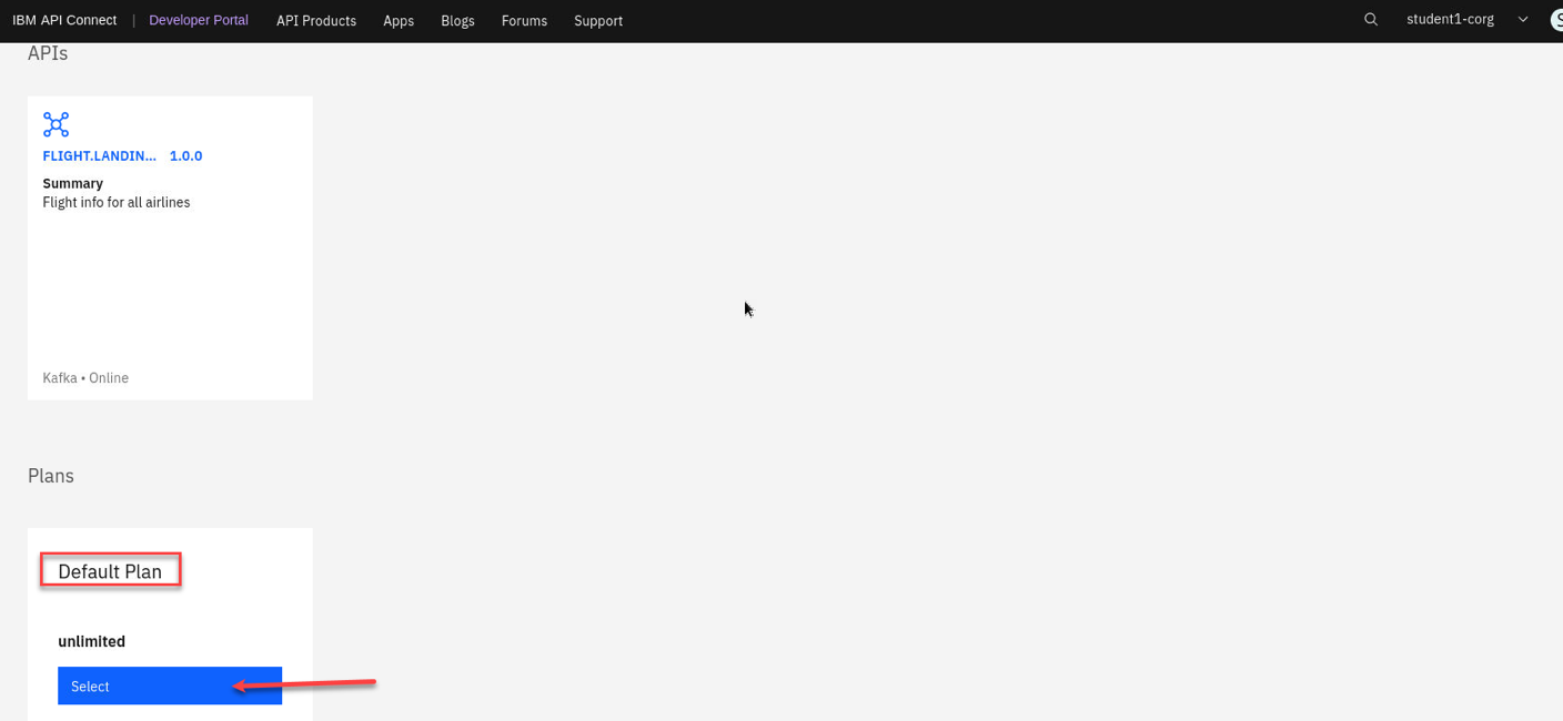b) Switch to API Connect Developer Portal. Select Flight.Landing