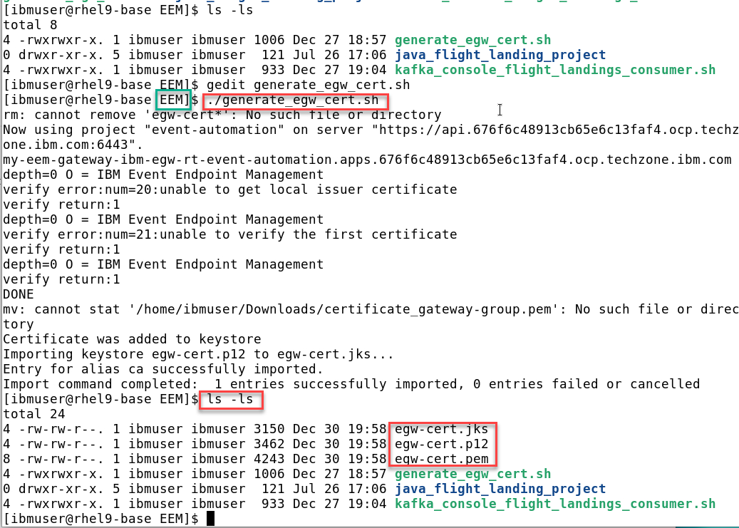 When script is done run ls -ltr of the directory and you should see the egw cert files