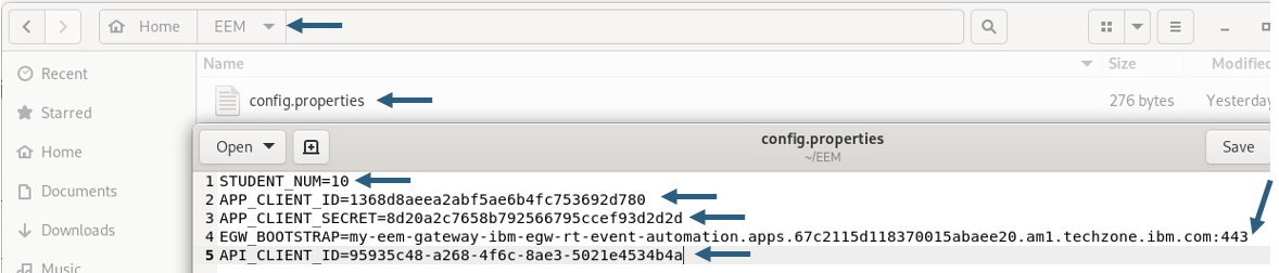 e) You will now have the credentials for your application. Let’s copy and paste them into ~/EEM/config.properties file.