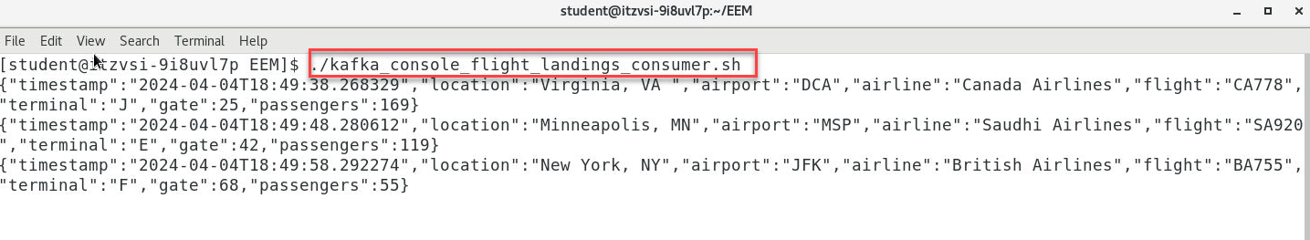 Open a NEW Terminal window (keep the kafka_console_flight_landing_consumer.sh running).