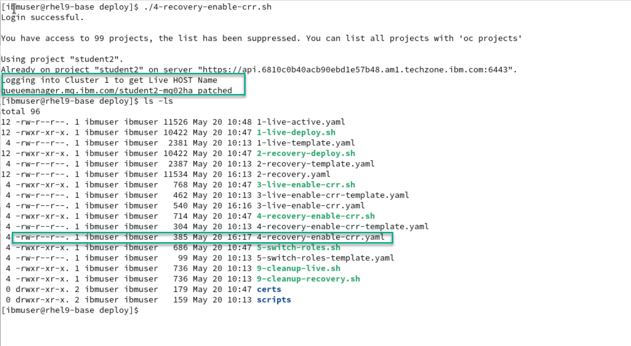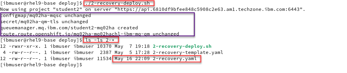Now from the deploy directory run the following command. You will see that it will create your Recovery QMgr on Cluster 2.