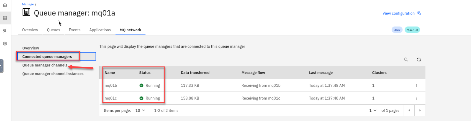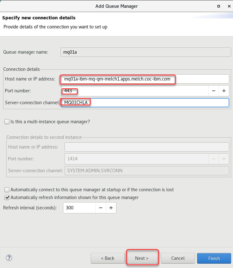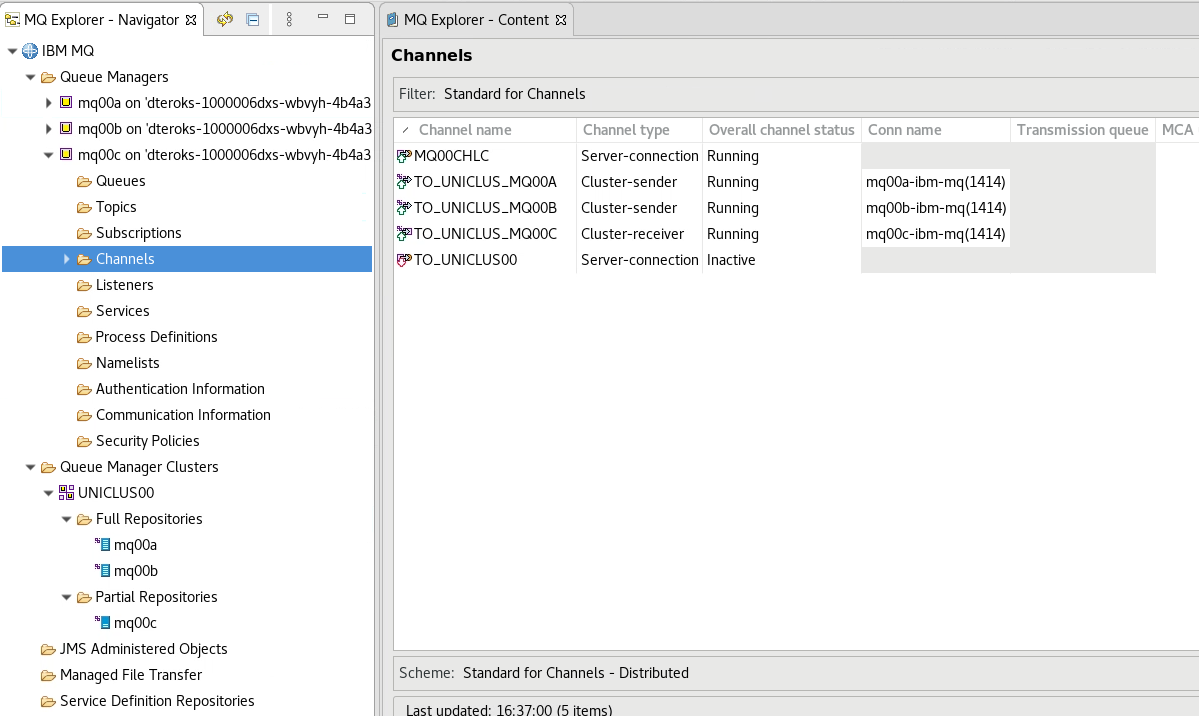 You can check the other queue manager’s console to verify that they are all configured the same.