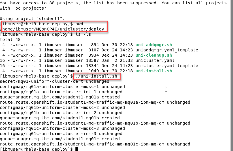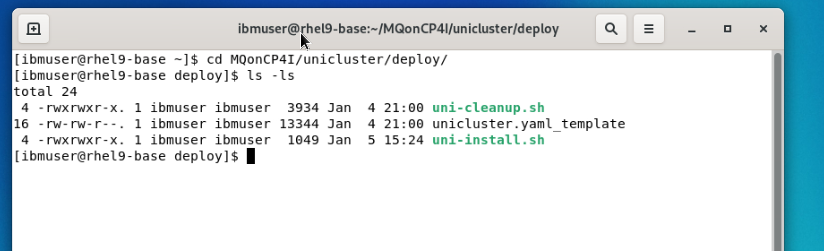 cd ~/MQonCP4I/unicluster/deploy