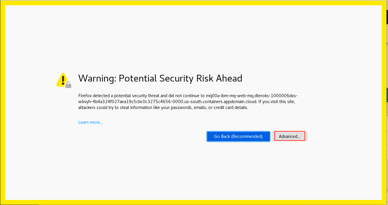 You will be presented with a warning pop-up. Click Advanced, then scroll down and click Accept the Risk and Continue.