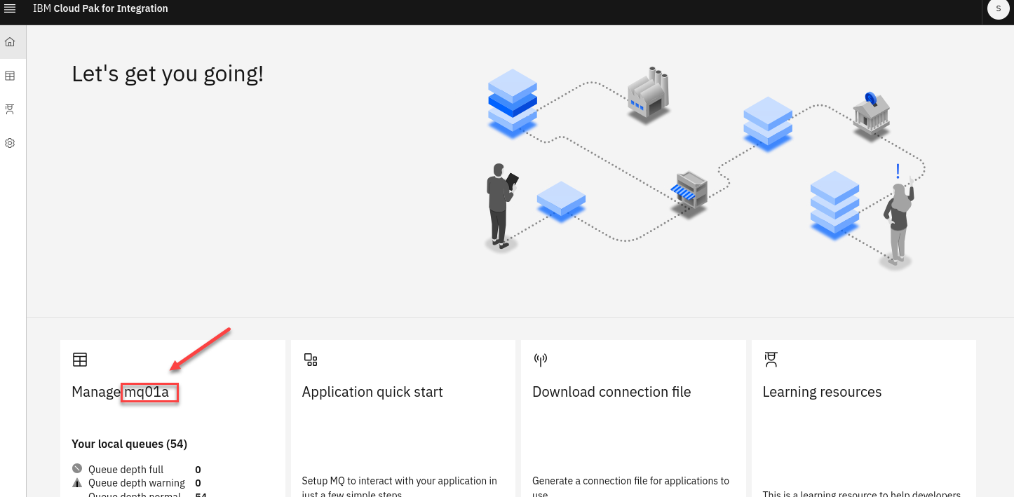 In the MQ Console click Manage mq00a. Of course your queue managers are different, 00 being replaced by your student ID.