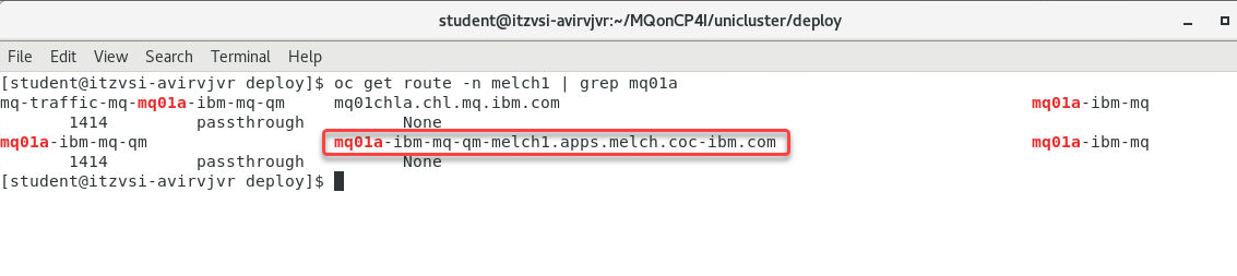 We will now need to get the hostname for this Qmgr to connect to it outside the OCP cluster to MQExplorer.